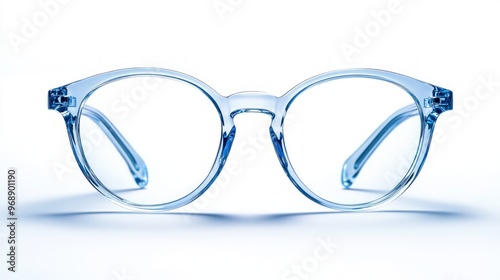 Fototapeta premium Modern Transparent Eyeglasses with Blue Frame Highlighting Elegance Isolated...