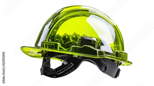 Fototapeta premium Modern transparent green hard hat guaranteeing safety on transparent background