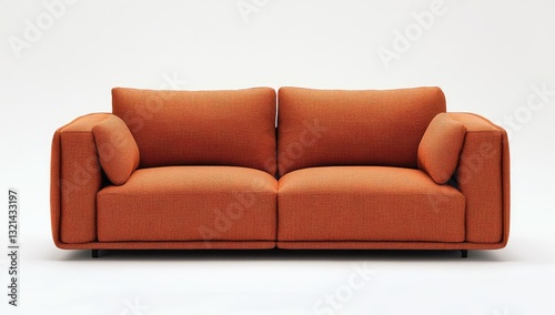 Fototapeta premium Modern two-seater couch in burnt orange. Clean lines, comfortable padded...