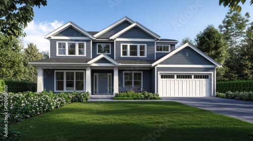 © @desy, Obraz premium Modern Two-Story Home with White Garage Door