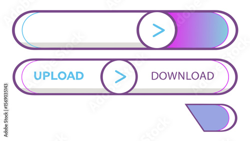 Obraz premium Modern ui ux design elements featuring two rounded toggle switch sliders with gradient fill and text labels for upload download and a separate button element