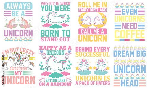 Fototapeta premium Modern Unicorn Typography, Invitation Pack Vector Illustration for...