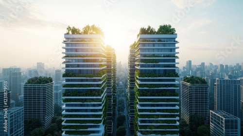Obraz premium Modern Urban Architecture with Green Spaces in City Skyline