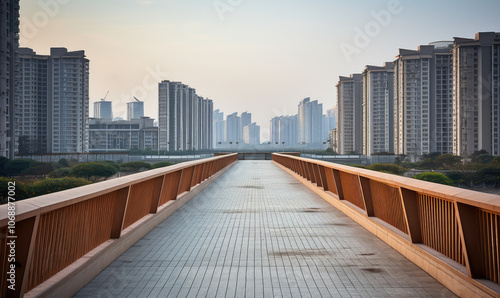 Obraz premium Modern Urban Bridge Leading to City Skyline