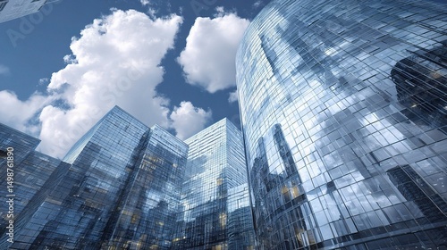 Naklejka premium Modern Urban Business Center with Glass Skyscrapers and Clouds