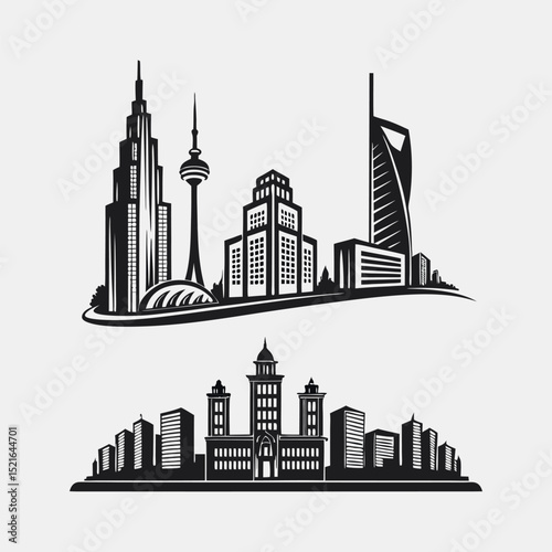 Obraz premium Modern Urban City Skyline Vector Silhouette