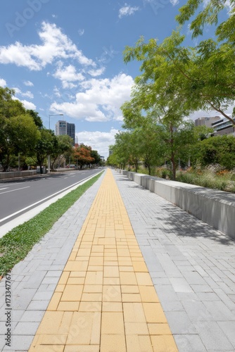 Fototapeta premium Modern Urban Forest Trail with Accessible Pathway and Bike Lane Premium Smart...