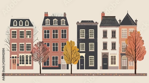 © Nicholus, Fototapeta premium Modern Urban Landscape with Houses, Trees, and Architectural Design