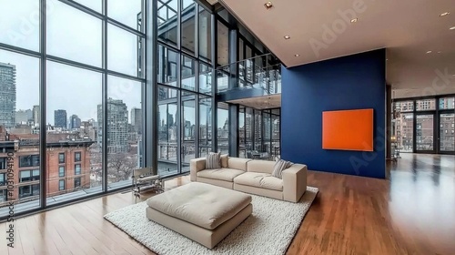 © ADD PHOTO, Fototapeta premium Modern Urban Living Room with City View