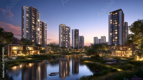 Naklejka premium Modern urban living spaces equipped with smart city technology, energy-saving systems, and customizable interiors, revolutionizing home design for the tech-driven world