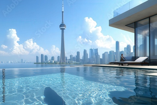 Naklejka premium Modern Urban Oasis with City Skyline View