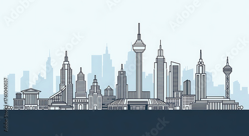 Obraz premium Modern Urban Skyline Illustration Series with Architectural Landmarks and...