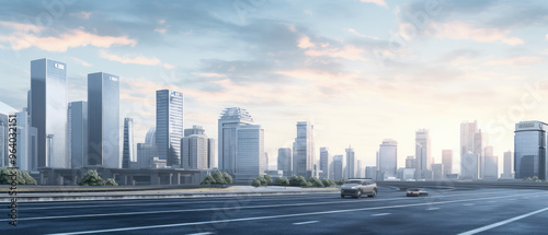 © evening_tao, Fototapeta premium Modern Urban Skyline with Empty Highway