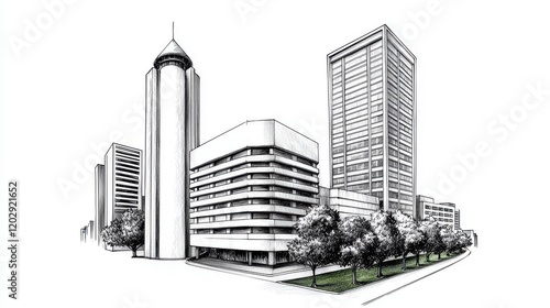 Naklejka premium Modern Urban Skyscrapers and Architectural Design in City Landscape