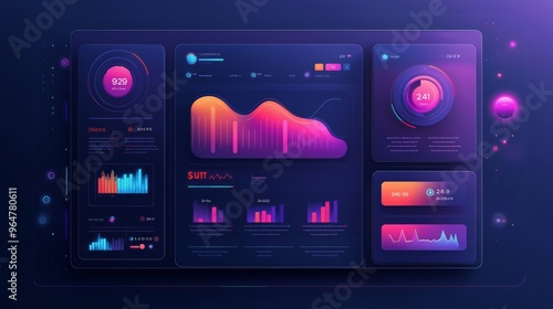 Obraz premium modern user interface with data analytics graphs and neon glow on dark...