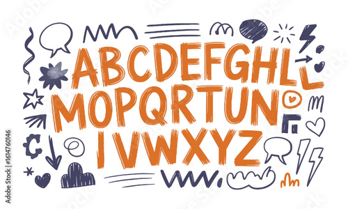 Fototapeta premium Modern vector illustration featuring a wide variety of hand-drawn doodle sketch elements, zigzags, underlines, squiggles, sketchy arrows, speech and thought bubbles, easily editable.