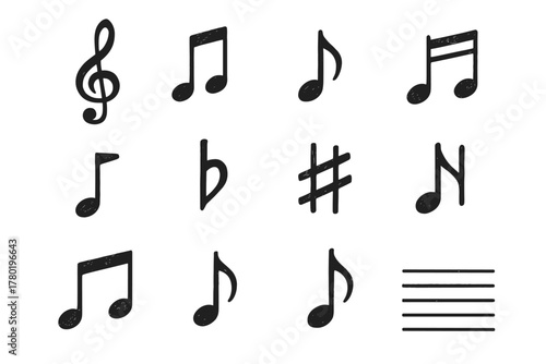 © Дар'я Солтис, Obraz premium Modern vector sixteenth dotted music staff elements icon double note sign line