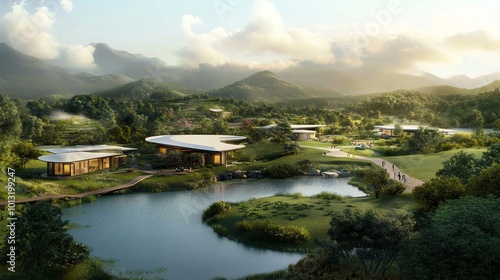© Puchong, Fototapeta premium Modern villa with infinity pool and tree