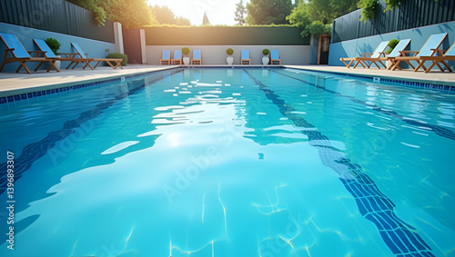 Obraz premium Modern Water Safety Guidelines: Effective Swimming Techniques, Pool Maintenance, Emergency Response, and Hazard Mitigation for Secure Aquatic Facilities - Stock Photo Concept with Left Space