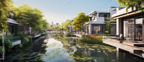 Obraz premium Modern Waterfront Homes in Tranquil Setting