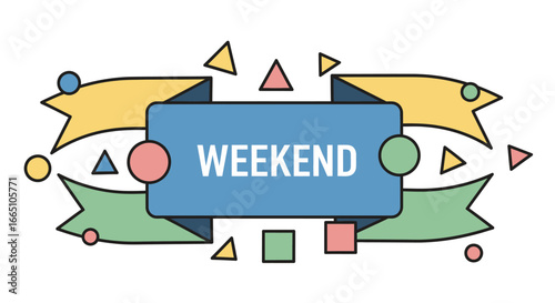 Fototapeta premium Modern Weekend Banner with Colorful Geometric Shapes and Ribbons.