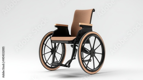 © Lavanya, Fototapeta premium Modern wheelchair design featuring sleek lines and comfortable seating, set against a minimalist background