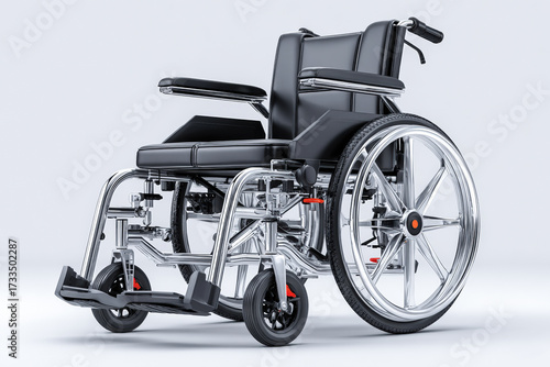 © Alla, Fototapeta premium Modern wheelchair with chrome frame on light background