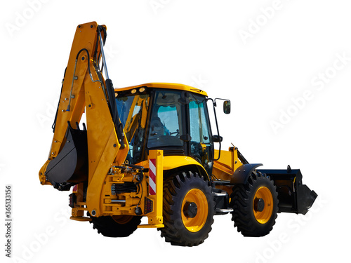 © PhotoBetulo, Fototapeta premium Modern wheeled excavator. Isolated image.