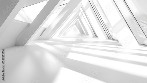 Obraz premium Modern white architecture interior, sunlight, geometric design, spacious hallway, architectural visualization