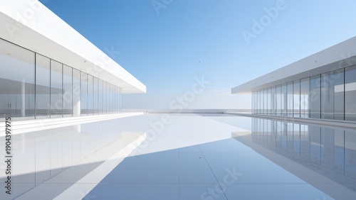 © Michael, Fototapeta premium Modern white building with glass facade