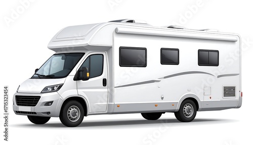 © imus, Naklejka premium Modern White Campervan, Ready for Adventure