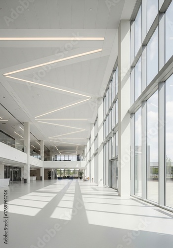 Obraz premium Modern white interior with large windows and natural light