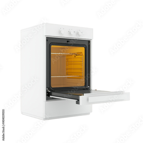 © Prichachai, Fototapeta premium modern white kitchen oven with open door, showcasing its interior with multiple racks. sleek design and clean lines make it stylish and functional appliance for any kitchen