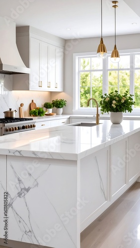 © Febi, Fototapeta premium Modern white kitchen with marble island (2)