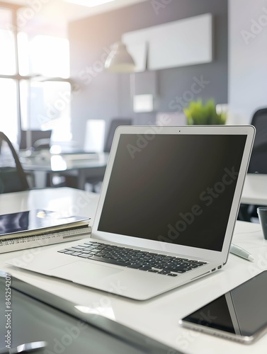 © PSCL RDL, Fototapeta premium Modern white office working space with notebook laptop computer mockup