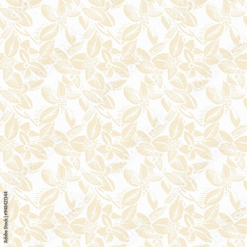 Obraz premium Modern white on cream lace effect wedding background texture. Soft tonal linen openwork block print with subtle hand drawn lattice damask printed fabric backdrop.
