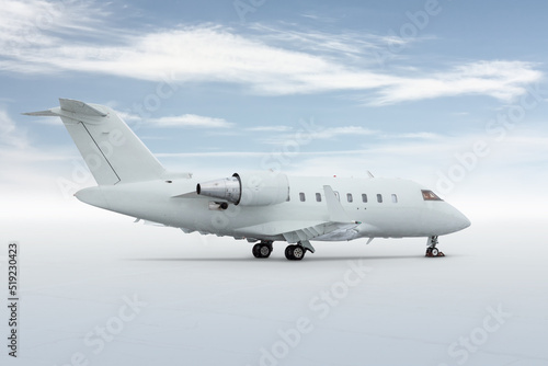 © Dushlik, Fototapeta premium Modern white private jet isolated on light background with sky