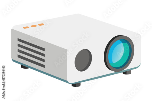 © Niranjon, Fototapeta premium Modern white projector with blue lens and orange indicator lights