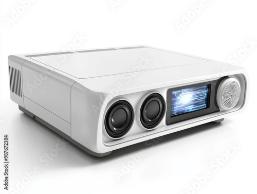 Fototapeta premium Modern White Projector with Digital Display and Speakers