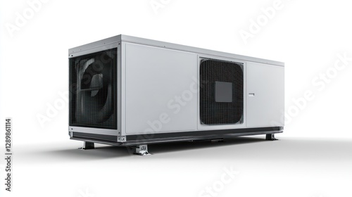 © Cucoo, Obraz premium Modern, white, rectangular HVAC unit on a white background.