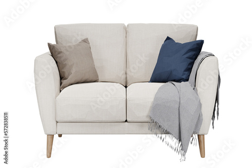 © Sandy, Fototapeta premium Modern white sofa on isolated transparent background, minimalist design, 3d render illustration.