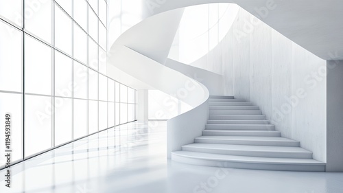 © Alfariha, Obraz premium Modern white spiral staircase, bright office