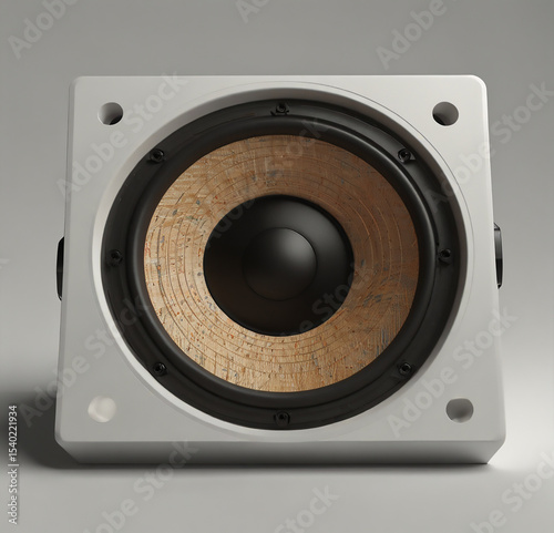 © SHIPON KAZI, Fototapeta premium Modern white square speaker with wood cone detail