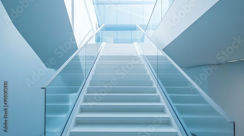 © Ariep, Fototapeta premium Modern White Staircase with Glass Railing