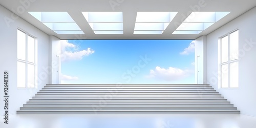 © Adobe Contributor, Naklejka premium Modern White Stairway Leads to Sky With Clouds