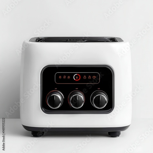 © june, Obraz premium Modern White Toaster with Control Dials and Sleek Design