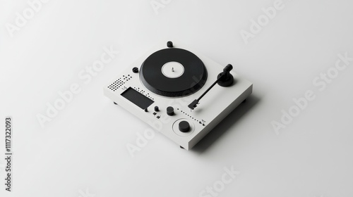 Fototapeta premium Modern White Turntable Plays Vinyl Record