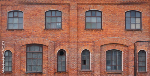 © Станислав Вершинин, Fototapeta premium Modern windows in the old red brick wall