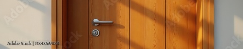 © Prayad, Obraz premium Modern wooden door with hinges in open position, kitchen island,