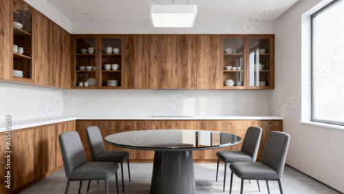 Fototapeta premium Modern Wooden Kitchen & Dining Integrated Space